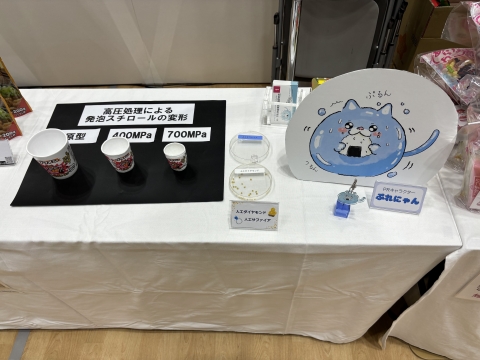 今年のフェア会場には、およそ11,000名の方々がお越しくださいました。この度の出展では、マリアナ海溝よりもさらに深い静水圧の世界ではどんなことが起こるのか、発泡スチロールモデルを使って説明しました。また、長岡市内の会員企業様、および顧問の先生が携わった高圧技術関連の製品を展示し、ものづくりに用いられる高圧技術を紹介しました。ブースを訪れた方々は、大人も子供も高圧の世界と技術を興味深そうに聞き入っていました。ご協力いただきました皆様方に、心より感謝申し上げます。